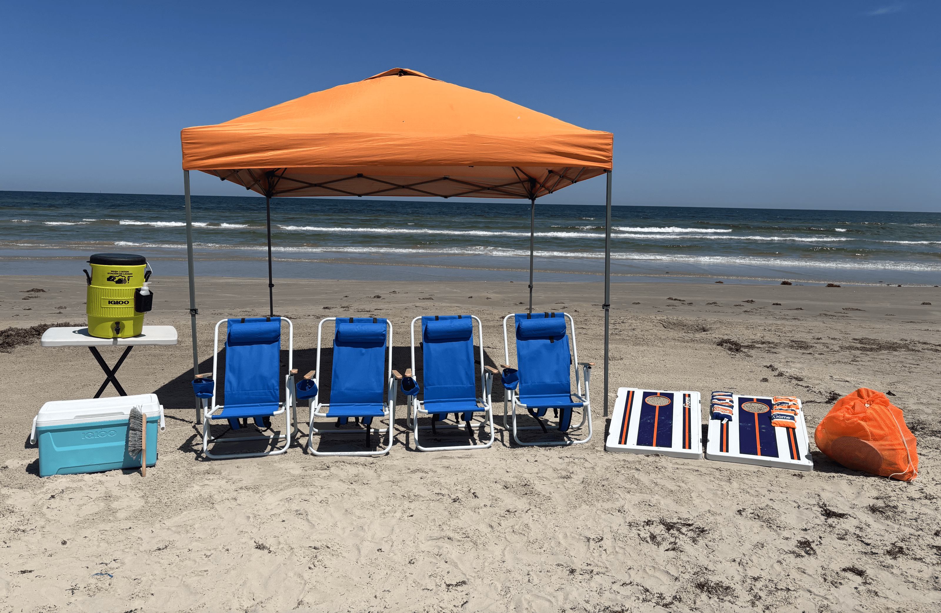 An upgraded option for small to medium groups who want to relax and play! We deliver your beach rental to you on the beach – you can let us know where to deliver on the beach when you checkout.